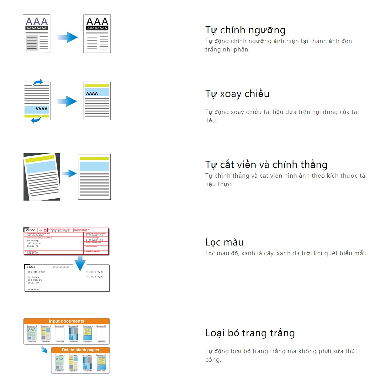 AFDF : 50 tờ (A4/letter, 70g/m2 hoặc 18 Lbs, độ giày tối đa dưới 5mm(0.2"); 20 tờ (Danh thiếp) |