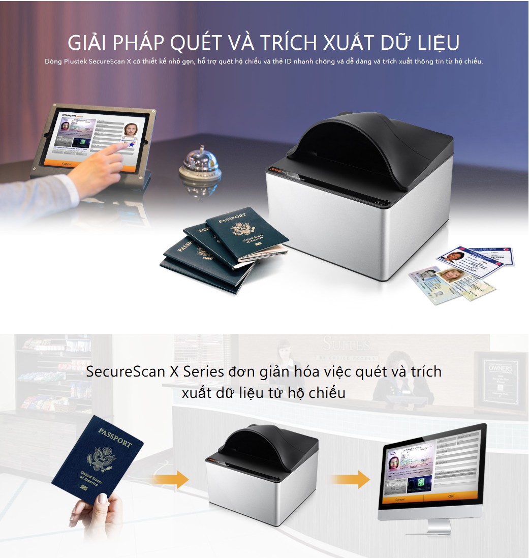 Plustek SecureScan X50 là máy quét chuyên dụng dành cho hộ chiếu, chứng minh thư/CCCD, bằng lái xe, thẻ ID và các giấy tờ nhận dạng khác. Thiết kế nhỏ gọn, kết nối USB, SecureScan X50 cho phép quét tài liệu nhanh chóng, độ chính xác cao và dễ tích hợp với phần mềm quản lý dữ liệu, phù hợp cho văn phòng, phòng giao dịch, khách sạn, viễn thông, ngân hàng và các điểm dịch vụ cần xác minh danh tính khách hàng.