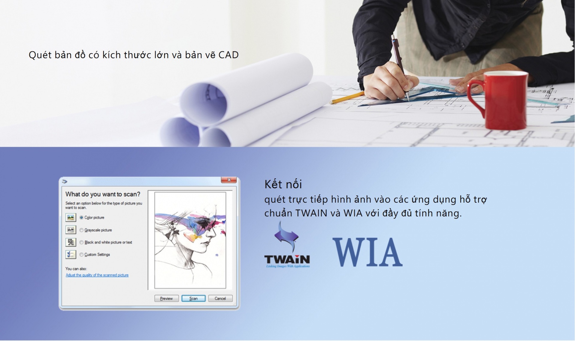Phù hợp scan bản vẽ kỹ thuật, sơ đồ, chứng chỉ, tài liệu khổ lớn